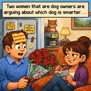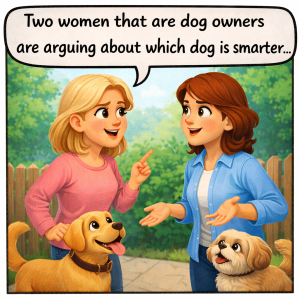 Two women that are dog owners are arguing about which dog is smarter…. First Woman : “My dog is so smart, every morning he waits for the…