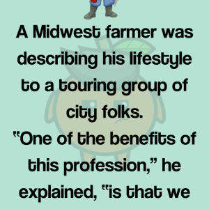 A Midwest farmer was describing his lifestyle to a touring group of city folks. “One of the benefits of this profession,” he explained, “is that we have…
