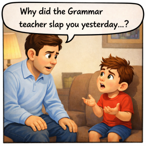 Why did the Grammar teacher slap you yesterday
