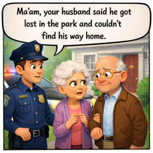 A police car pulled up in front of Grandma Bessie’s house, and out stepped Grandpa Morris.The officer politely explained, “Ma’am, your husband said he got lost in…
