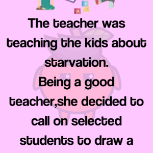 The teacher was teaching the kids about starvation. Being a good teacher,she decided to call on selected students to draw a picture of starvation on the board….