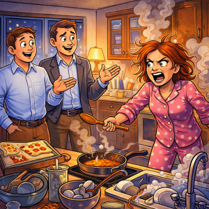 A man brings his best buddy home for dinner…unannounced at 7:30 pm after work. His wife begins screaming at him and his friend just sits and listens….