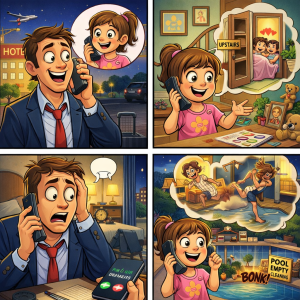 A man was away on a business trip and decided to call his wife to let her know he had arrived safely. A little girl picks up…