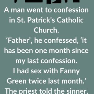 A man went to confession in St. Patrick’s Catholic Church. ‘Father’, he confessed, ‘it has been one month since my last confession. I had sex with Fanny…