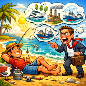 A fisherman was lying on a beautiful beach. One day a fisherman was lying on a beautiful beach, with his fishing pole propped up in the sand…