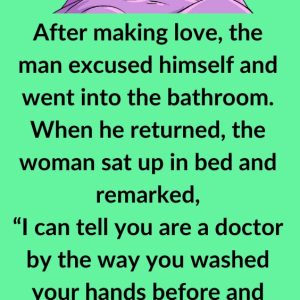 After making love, the man excused himself and went into the bathroom. When he returned, the woman sat up in bed and remarked, “I can tell you…
