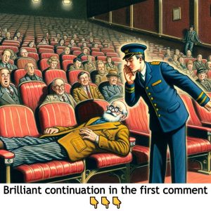 An old man lay sprawled across three entire seats in the movie theatre.When the usher came by and noticed this, he whispered to the old man,“Sorry sir,…