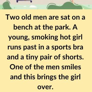 Two old men are sat on a bench at the park. A young, smoking hot girl runs past in a sports bra and a tiny pair of…