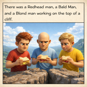 There was a Redhead man, a Bald Man, and a Blond man working on the top of a cliff. The Redhead said, “You know, every day it’s…
