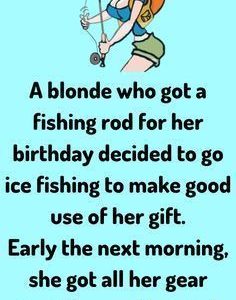 A blonde who got a fishing rod for her birthday decided to go ice fishing, to make good use of her gift. Early the next morning, she…