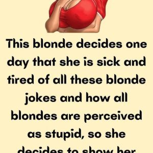 This blonde decides one day that she is sick and tired of all these blonde jokes and how all blondes are perceived as stupid, so she decides…
