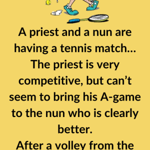 A priest and a nun are having a tennis match… The priest is very competitive, but can’t seem to bring his A-game to the nun who is…