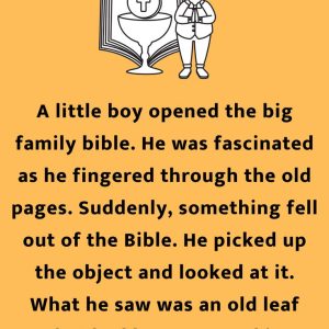 A little boy opened the big family bible. He was fascinated as he fingered through the old pages. Suddenly, something fell out of the Bible. He picked…