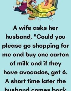 A wife asks her husband, “Could you please go shopping for me and buy one carton of milk and if they have avocados, get 6. A short…