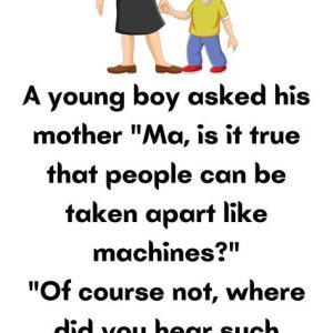 A young boy asked his mother “Ma, is it true that people can be taken apart like machines?” “Of course not, where did you hear such nonsense?”…