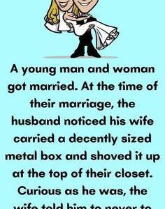 A young man and woman got married. At the time of their marriage, the husband noticed his wife carried a decently sized metal box and shoved it…