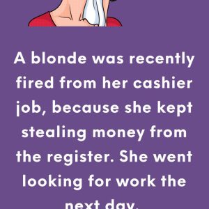 A blonde was recently fired from her cashier job, because she kept stealing money from the register. She went looking for work the next day. A few…