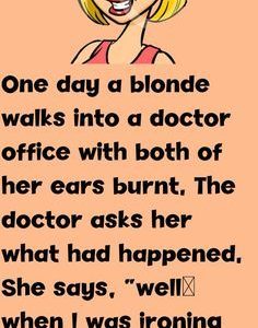 One day a blonde walks into a doctors office with both of her ears burnt… The doctor asks her what had happened. She says: “well… when I…