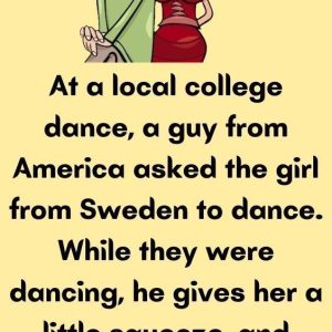 At a local college, there was a dance. A guy from America asked the girl from Sweden to dance. While they were dancing, he gives her a…