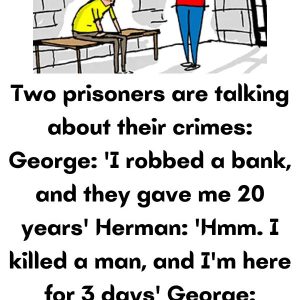 Two prisoners are talking about their crimes: George: ‘I robbed a bank, and they gave me 20 years’ Herman: ‘Hmm. I killed a man, and I’m here…