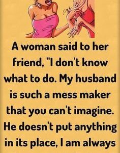 A woman said to her friend, “I don’t know what to do. My husband is such a mess maker that you can’t imagine. He doesn’t put anything…
