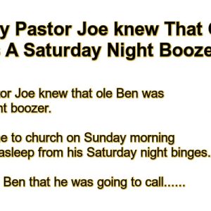 An elderly Pastor Joe knew that ole Ben was a Saturday night boozer. He always came to church on Sunday morning but always fell asleep from his…