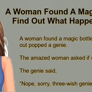 A woman found a magic bottle, rubbed it, and out popped a genie. The amazed woman asked if she got three wishes. The genie said, “Nope, sorry,…