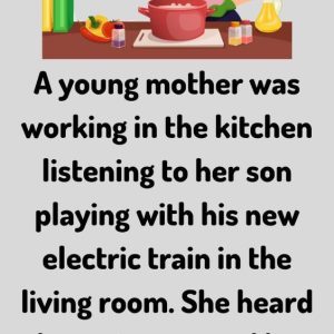A few days after Christmas, a mother was working in the kitchen listening to her young son playing with his new electric train in the living room….