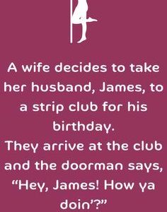 A wife decides to take her husband, Dave, to a strip club for his birthday. They arrive at the club and the doorman says, “Hey, Dave! How…