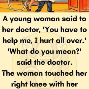 A gorgeous young brunette goes into the doctor’s office and said that her body hurt wherever she touched it. “Impossible!” says the doctor. “Show me”. “The brunette…
