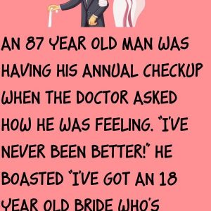 An 87 year old man was having his annual checkup when the doctor asked how he was feeling. “I’ve never been better!” he boasted “I’ve got an…