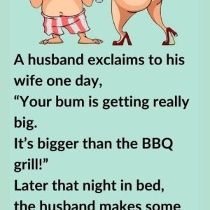 A husband exclaims to his wife one day: “Your bum is getting really big. It’s bigger than the BBQ grill!” Later that night in bed, the husband…