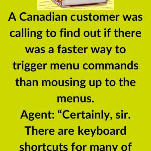 A Canadian customer was calling to find out if there was a faster way to trigger menu commands than mousing up to the menus. Agent: “Certainly, sir….