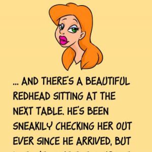 … and there’s a beautiful redhead sitting at the next table. He’s been sneakily checking her out ever since he arrived, but doesn’t have the courage to…