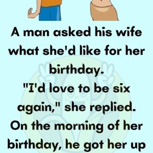 A man asked his wife what she’d like for her birthday. “I’d love to be six again,” she replied. On the morning of her birthday, he got…