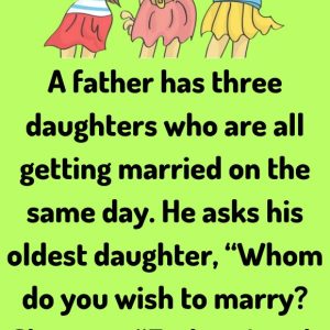 A father has three daughters who are all getting married on the same day. He asks his oldest daughter, “Whom do you wish to marry? She says,…