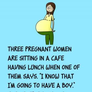 Three pregnant women are sitting in a cafe having lunch when one of them says. “I know that I’m going to have a boy.” The other two…