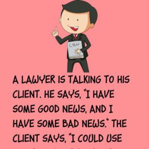 A lawyer is talking to his client. He says, “I have some good news, and I have some bad news.” The client says, “I could use some…