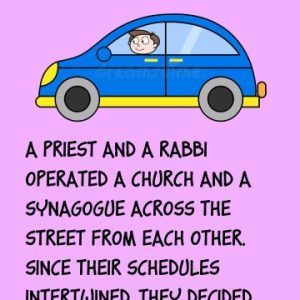 A priest and a rabbi operated a church and a synagogue across the street from each other. Since their schedules intertwined, they decided to go in together…