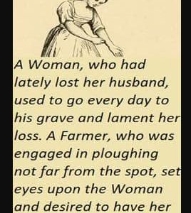 A Woman, who had lately lost her husband, used to go every day to his grave and lament her loss. A Farmer, who was engaged in ploughing…