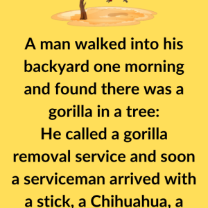 A man walked into his backyard one morning and found there was a gorilla in a tree: He called a gorilla removal service and soon a serviceman…