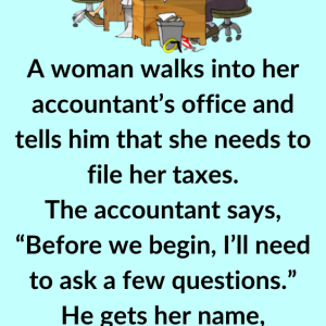 A woman walks into her accountant’s office and tells him that she needs to file her taxes. The accountant says, “Before we begin, I’ll need to ask…