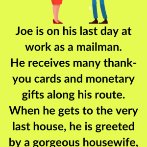 Joe is on his last day at work as a mailman. He receives many thank-you cards and monetary gifts along his route. When he gets to the…