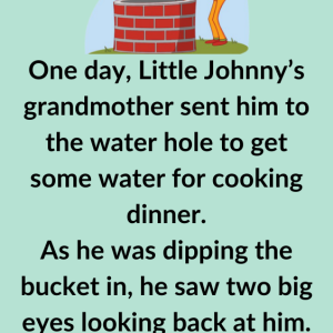 One day, Little Johnny’s grandmother sent him to the water hole to get some water for cooking dinner. As he was dipping the bucket in, he saw…