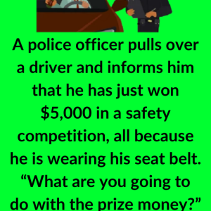 A police officer pulls over a driver and informs him that he has just won $5,000 in a safety competition, all because he is wearing his seat…