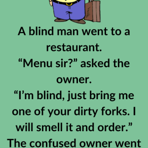 A blind man went to a restaurant. “Menu sir?” asked the owner. “I’m blind, just bring me one of your dirty forks. I will smell it and…