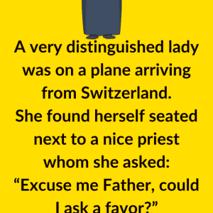 A very distinguished lady was on a plane arriving from Switzerland. She found herself seated next to a nice priest whom she asked: “Excuse me Father, could…