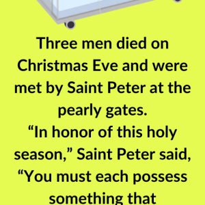 Three men died on Christmas Eve and were met by Saint Peter at the pearly gates. “In honor of this holy season,” Saint Peter said, “You must…
