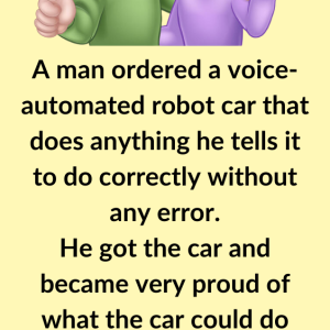 A man ordered a voice-automated robot car that does anything he tells it to do correctly without any error. He got the car and became very proud…