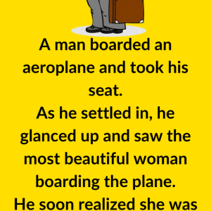 A man boarded an airplane and took his seat. As he settled in, he glanced up and saw the most beautiful woman boarding the plane. He soon…